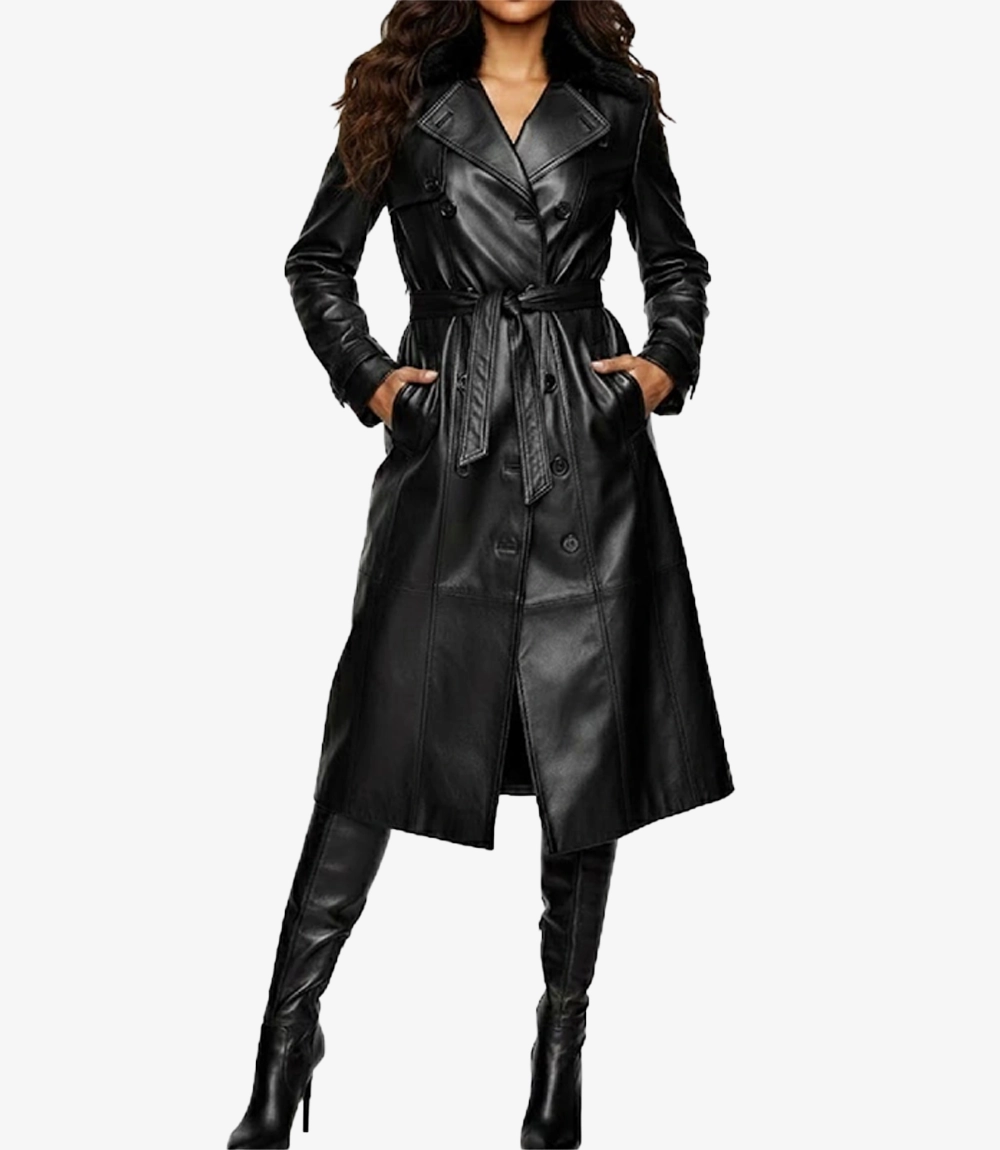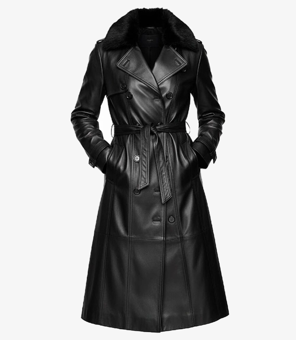 Alicia Black Genuine Leather Fur Trench Coat