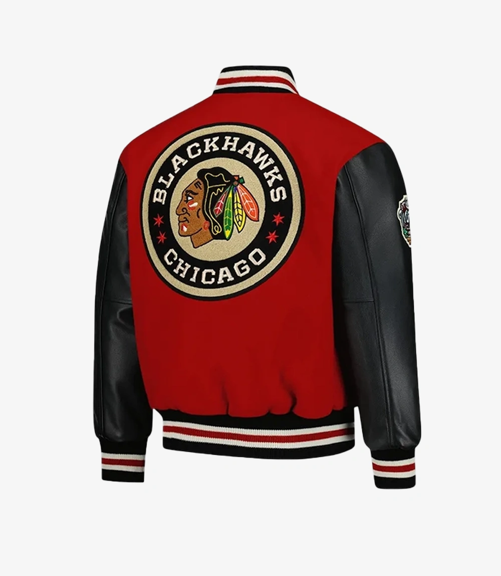 Recreation: Chicago Blackhawks 2025 Winter Classic Red And Black Varsity Jacket