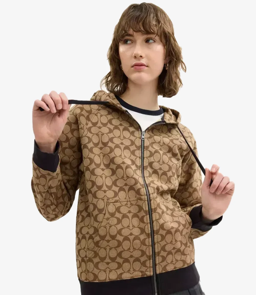 Recreation: Coach All Over Signature Full-Zip Brown Hoodie
