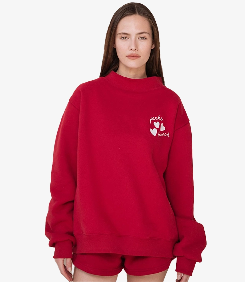 Recreation: Parke & Brunch Valentine’s Red Mockneck Fleece Sweatshirt