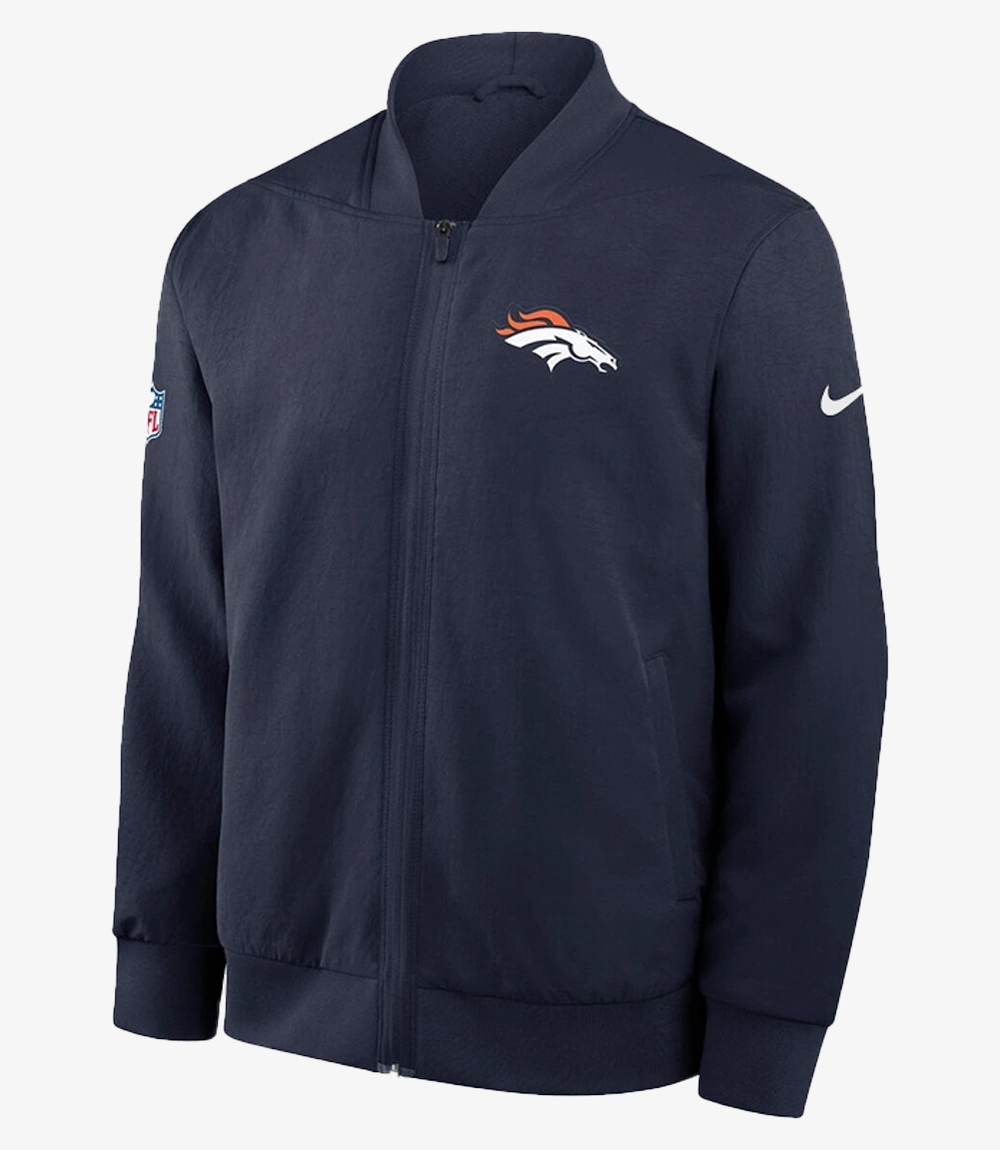 Recreation: Denver Broncos Coach Sean Payton Nike 2025 Sideline Navy Blue Bomber Jacket