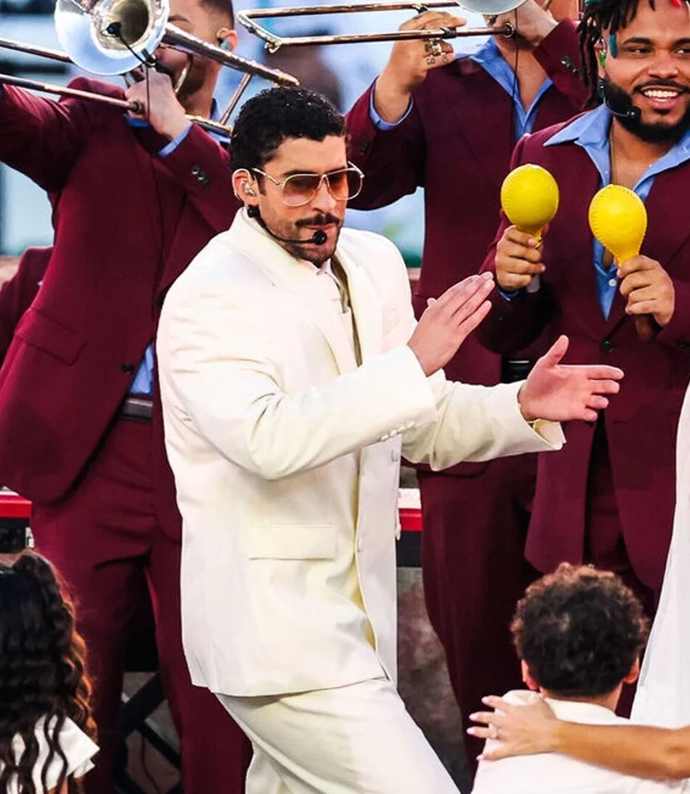 Super Bowl LX Halftime Show Bad Bunny White Blazer